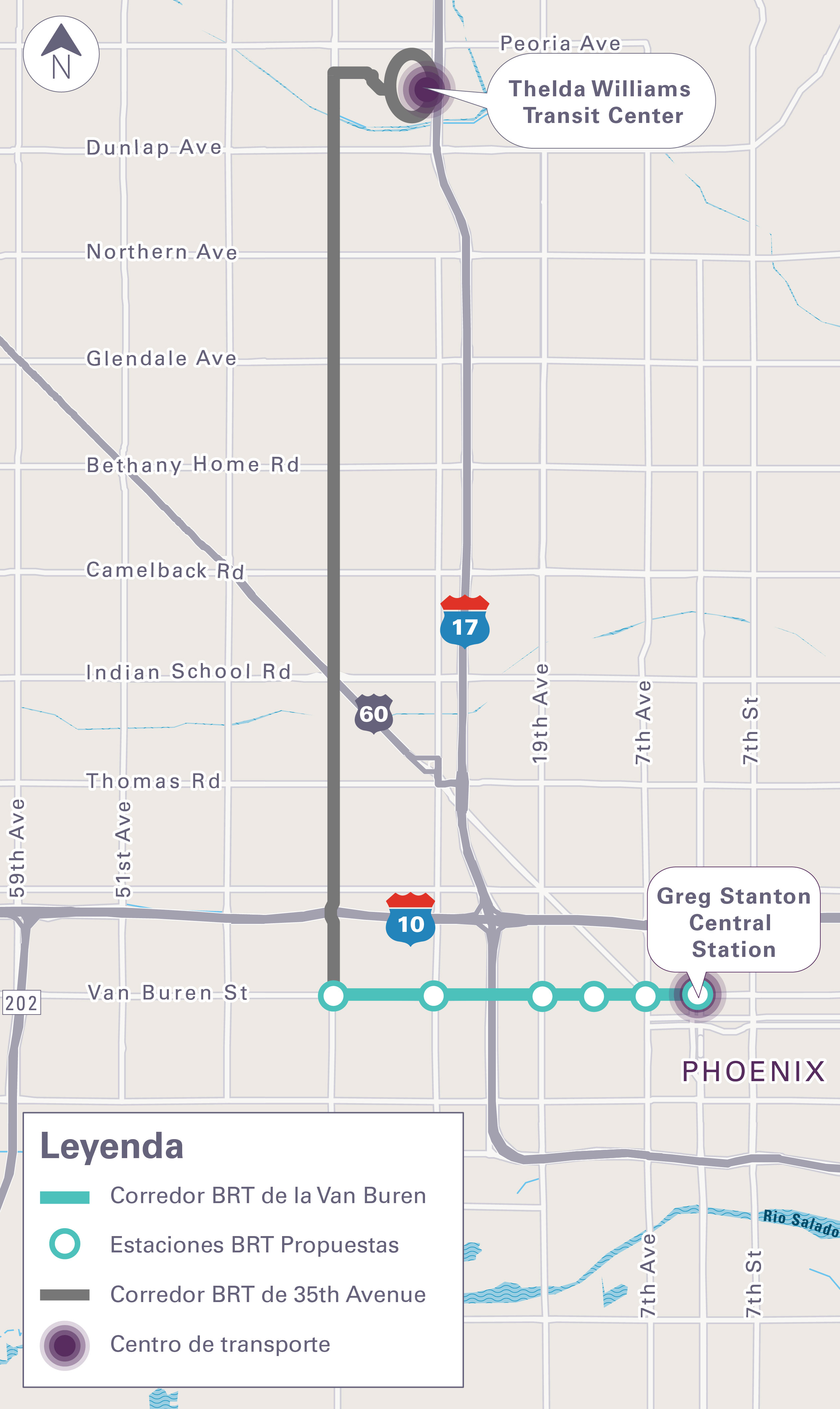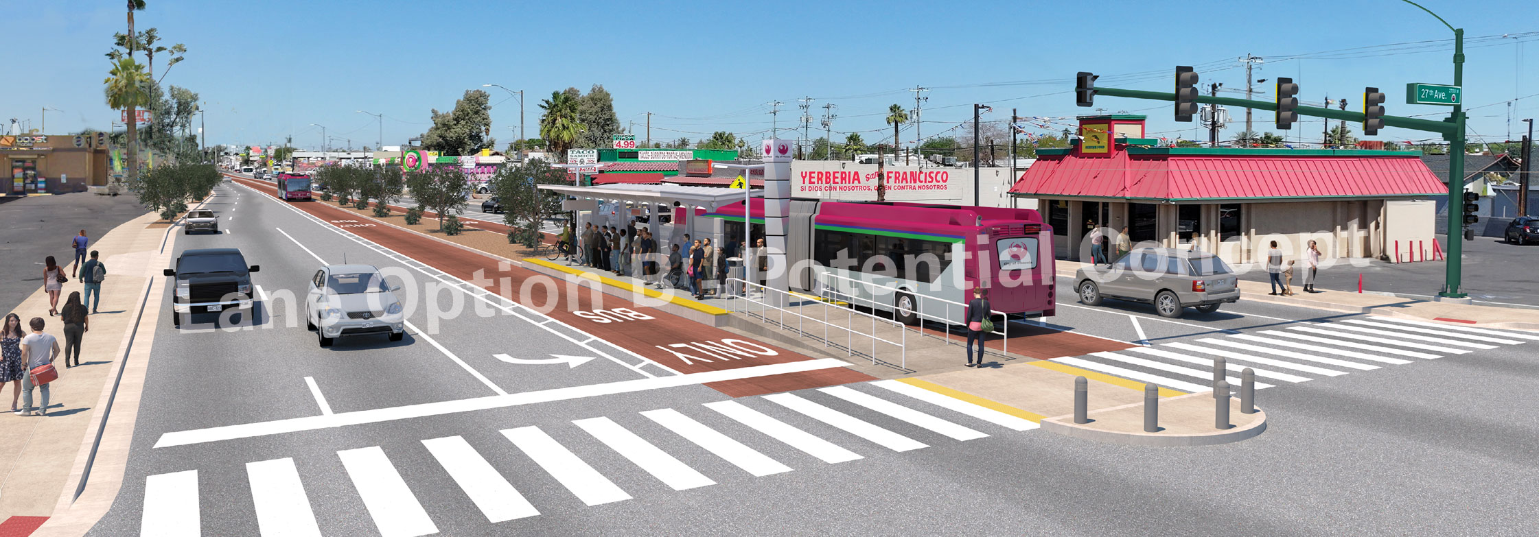 The first corridor has been approved on 35th Avenue and Van Buren Street. In Spring 2025, outreach efforts focused on 35th Avenue between Van Buren Street and Cheryl Drive. Through extensive outreach to community members, council members, and elected officials, center-running BRT was selected for 35th Avenue and 15% design is underway.